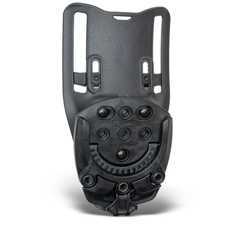 ![]() Blade-Tech Quick Connect Mounting System - Kit on VALOR Duty Drop. The Blade-Tech Tek-Mount™ Kit is a two-part quick connect mounting system consisting of a Receiver and a 360 Insert Disk™. This mounting system provides the same function, speed, and ease of use as the Safariland® QLS but with the added ability to cant your holster instantly without the use of screws or posts. The patent pending Tek-Mount mounting system allows for 10-degree cant increments in 360 degrees. The Tek-Mount Receiver is to be affixed to Belt attachments as a belt mount, Molle Attachments, Drop-Leg Platforms, and more. While the Tek-Mount 360 Insert Disk is to be affixed to your OWB holster, mag pouch, knife sheath, or any other carried gear. NTOA Member tested and approved, the Tek-Mount is durable, reliable, and modular. Blade-Tech Tek-Mount Quick Connect Mounting System - Kit on VALOR Duty Drop Features: