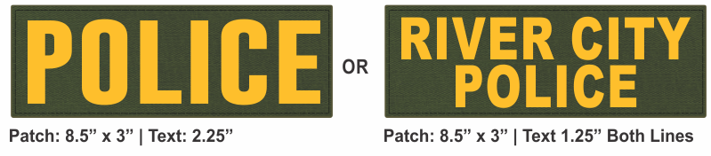 Build your custom tactical identification patches on-line with fast turnaround. These hook-backed panels display your agency/unit information in large bold lettering in a wide choice of sizes and colors. The custom content is plotter-cut on polyurethane film and permanently heat-fused to a tough, abrasion-resistant 500 denier ballistic fabric that is sewn to a flexible industrial hook backing. The completed product mates with the soft loop material on tactical vests, outerwear, packs and bags. They are extremely durable, removable, and carry a full one-year warranty against material and workmanship defects. The cost is reasonable, no setup fees, no minimum quantity and fast turnaround. Ideal for: