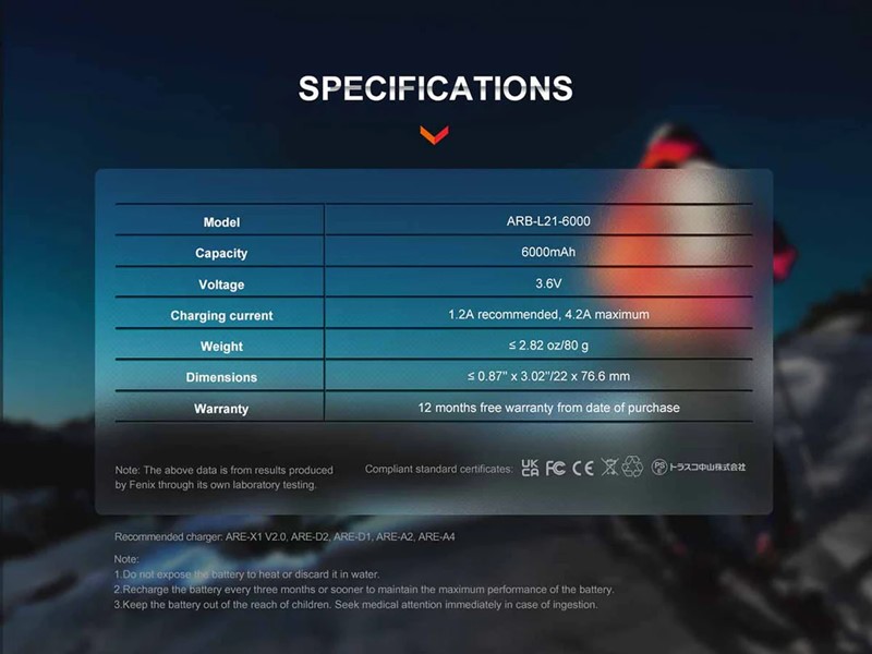 Fenix ARB-L21-6000 21700 Rechargeable Battery Compatibility: