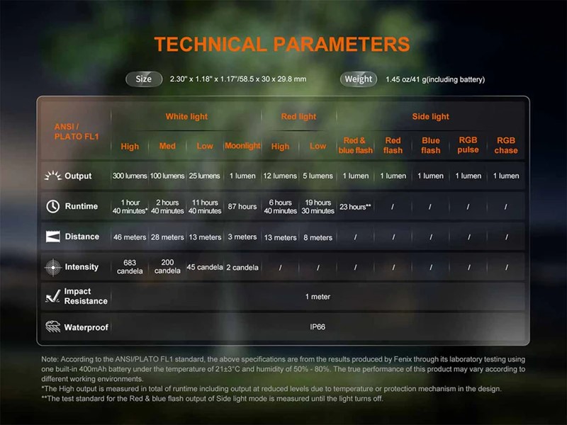 ![]() Fenix E04R Clip On Flashlight - 300 Lumens. The Fenix E04R Clip On Flashlight is a lightweight, multifunctional EDC flashlight designed for seamless hands-free use. This clip on flashlight features a 360° rotating clamp that easily secures to a pocket, backpack, or hat. The LEDs are uniquely set at a 40° angle, allowing the light to perfectly illuminate the ground and the path ahead simultaneously. With 11 total modes, the E04R offers incredible versatility in a tiny package. It features both forward-facing white and red light, along with five colorful Scene modes on the side-facing ring light for safety and signaling. At only 2.3" long, it delivers a capable 300 lumens and is quickly charged via its built-in USB Type-C port. Built to withstand the elements, the Fenix E04R is IP66 rated for heavy rain resistance, and its charging port also has inner waterproofing. Whether you're hiking, working on a DIY project, or improving your visibility while walking, this clip on flashlight provides the flexible, reliable lighting you need. Fenix E04R Clip On Flashlight Features: