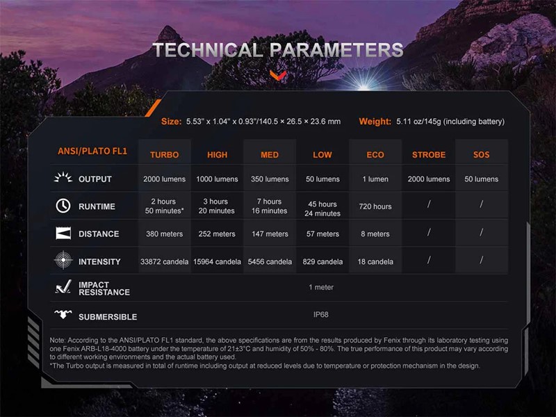 Fenix PD35R ACE Flashlight Specs: