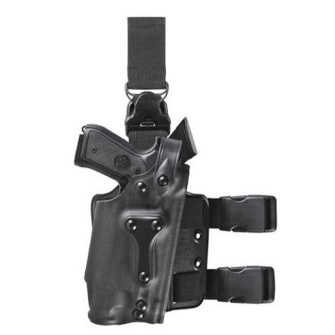 Safariland 6035 SLS Military Tactical Holster w/QR - Closeout. The Safariland 6035 Tactical Holster for gun mounted lights has a quick-detach double leg strap and is designed to fit the Beretta M9/92F or Sig Sauer P250/P320 pistol with or without a light or LAM unit. The forward rotating hood allows for a smooth single-motion draw. The 6034 is fully ambidextrous, as the rotating hood design can be changed from right to left. Hood Guard is standard. It features a standard double leg strap and leg shroud with mounting holes for optional accessories. Tough STX Tactical® finish. Safariland 6035 SLS Military Tactical Holster w/Quick Release Features: