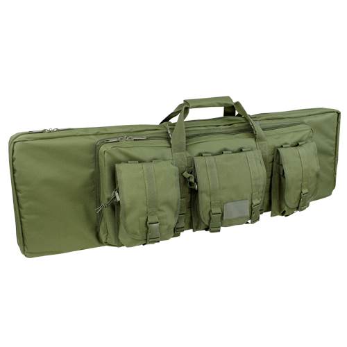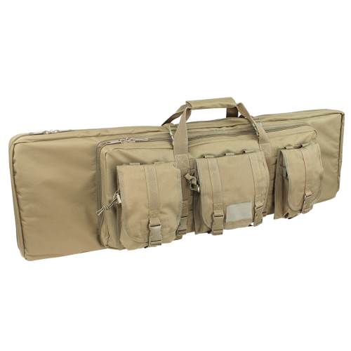 Condor 36-inch Double Rifle Case. The Condor 36" Double Rifle Case is designed to carry two primary weapons, with the addition 26" compartment for pistol, optic, SMG or other accessories. It comes with 3 modular pouches that combined holds up to 14 M4 magazines. The padded divider separates the two rifles and the entire case is fully padded for maximum protection. The double rifle cases are available in 36" (151), 42" (152) and 46" (159). Condor 36-inch Double Rifle Case Features: