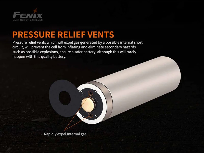 Fenix ARB-L21-5000 V2.0 21700 Rechargeable Battery. The Fenix ARB-L21-5000 V2.0 is a high-capacity 21700 Li-ion rechargeable battery is built for more power and longer runtimes. Additional features include a protection circuit in the anode to help prevent short circuits, over charge/discharge and over heating. Pressure relief vents which expel waste gas in the rare case of an internal short circuit preventing an explosion. Battery capacity up to 5000mAh. 500 charging cycles. Fenix ARB-L21-5000 V2 21700 Rechargeable Battery Features: