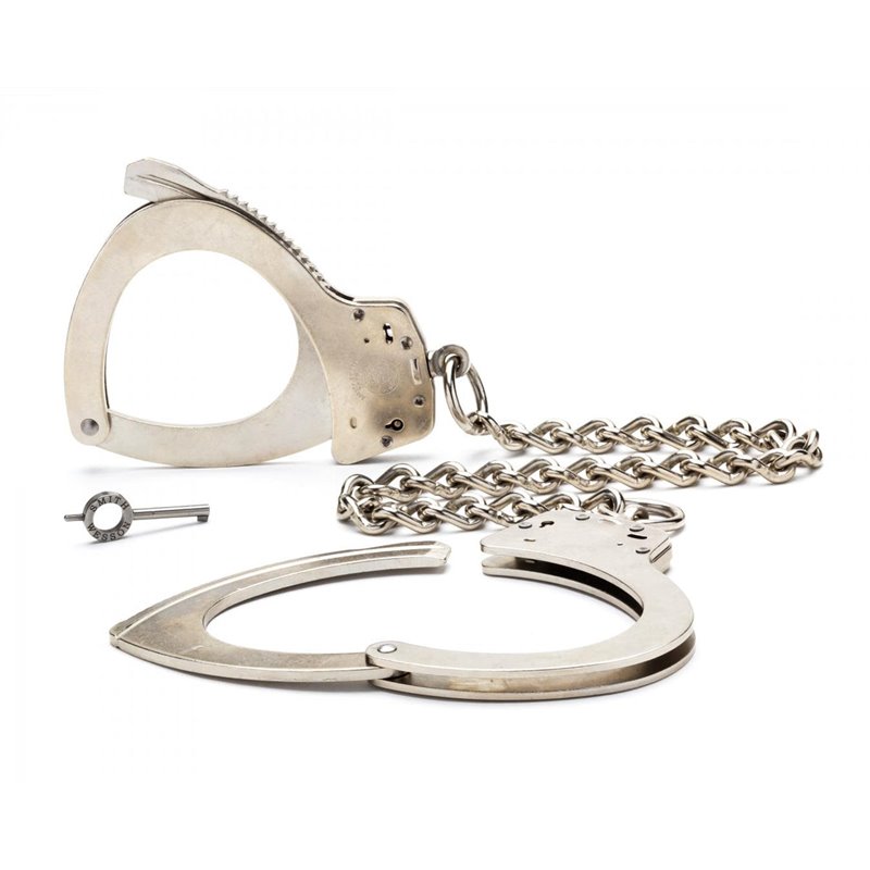 Smith & Wesson Leg Irons. Over-sized leg irons with 14-inch high-security heat-treated chain and larger dimension, elliptically contoured satin nickel cuffs. Smith & Wesson Handcuffs are fabricated from the finest quality carbon steel. They are manufactured with heat treated internal lockworks, featuring smooth ratchets for swift cuffing and double locks to prevent tampering. All S&W handcuffs meet or exceed demanding U.S. National Institute of Justice tests for workmanship, strength, corrosion and tamper resistance. Smith & Wesson 1900 Leg Irons Features: