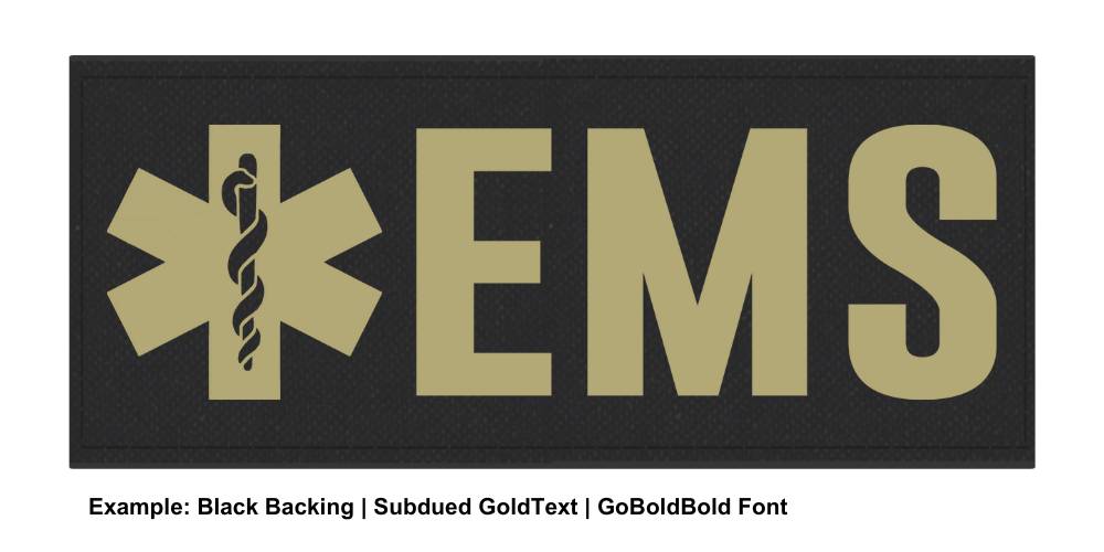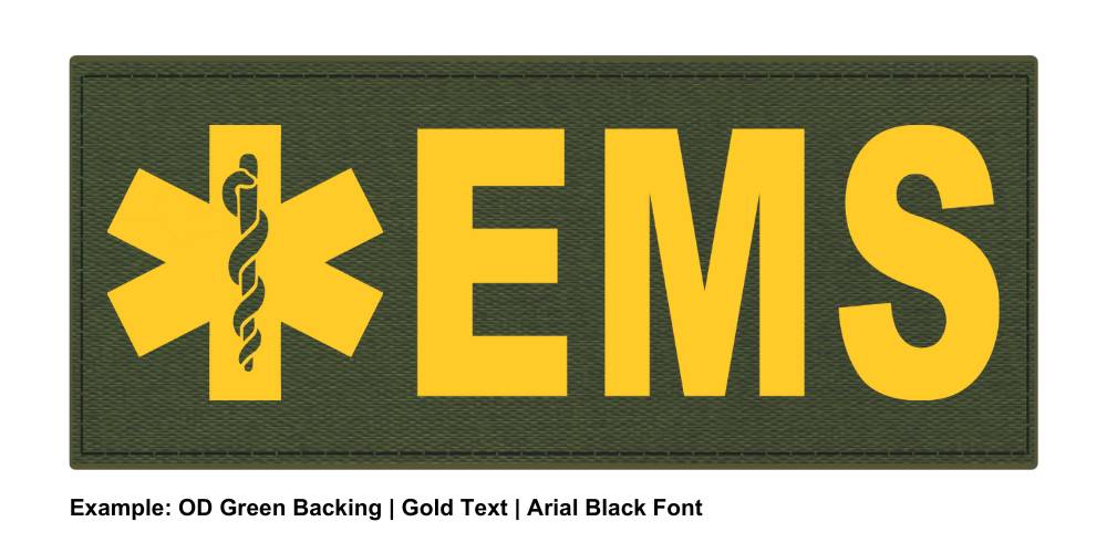 Home > Stock Tactical Identification Patches > Stock ID Patch - EMS with Star of Life Symbol - 6x2 - Hook Base EMS Star of Life ID Patches - Various Colors - 6x2. These hook-backed panels display your identification in large bold lettering. The text content is plotter-cut polyurethane film that is permanently fused to a laser-cut, abrasion-resistant 500 denier woven waterproof polyester fabric that is sewn to a flexible industrial hook backing. The product mates with the soft loop material on tactical vests, load bearing vests, uniform carriers, outerwear, packs and bags. These patches are extremely durable, removable, and carry a full one-year warranty against material and workmanship defects.